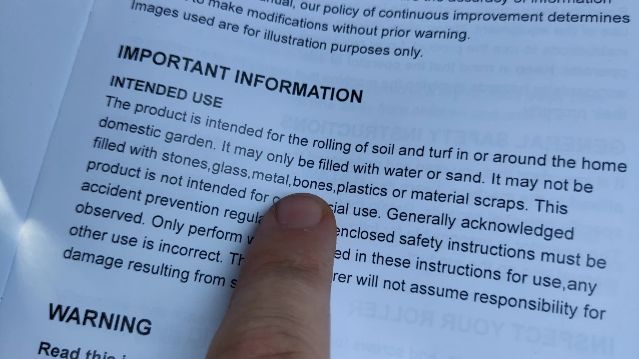 Zooming further in, we see that the manual declares it must be filled with sand or water and never stones, glass, metal, bones, plastic or material scraps