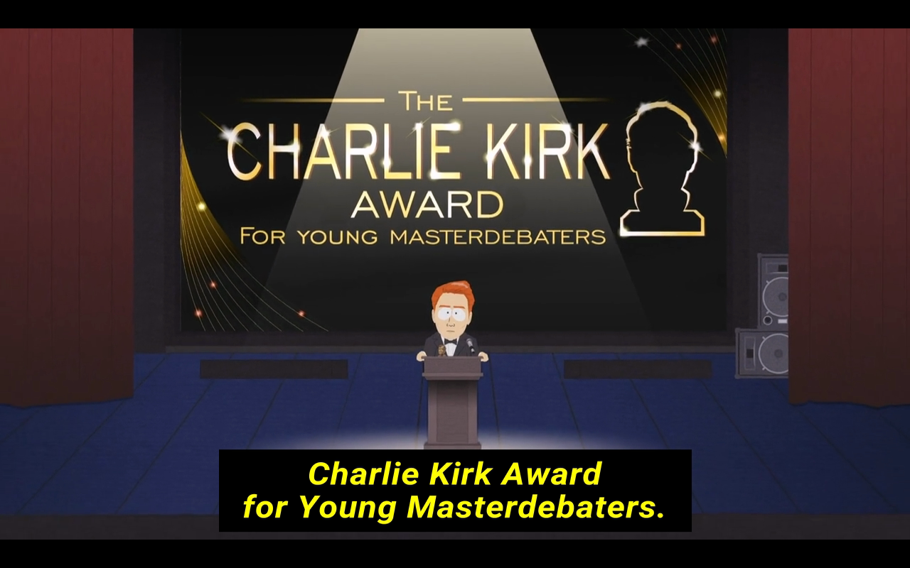 Stage with podium for the Charlie Kirk Award for Young Masterdebaters.