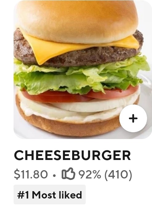 A hamburger on a DoorDash page, showing a price of 11.80$