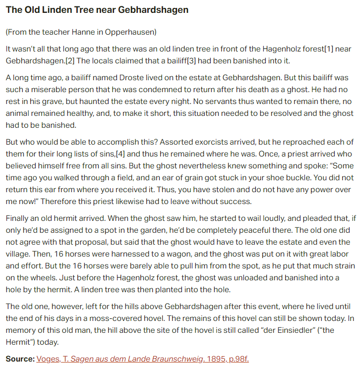 German folk tale "The Old Linden Tree near Gebhardshagen". Drop me a line if you want a machine-readable transcript!