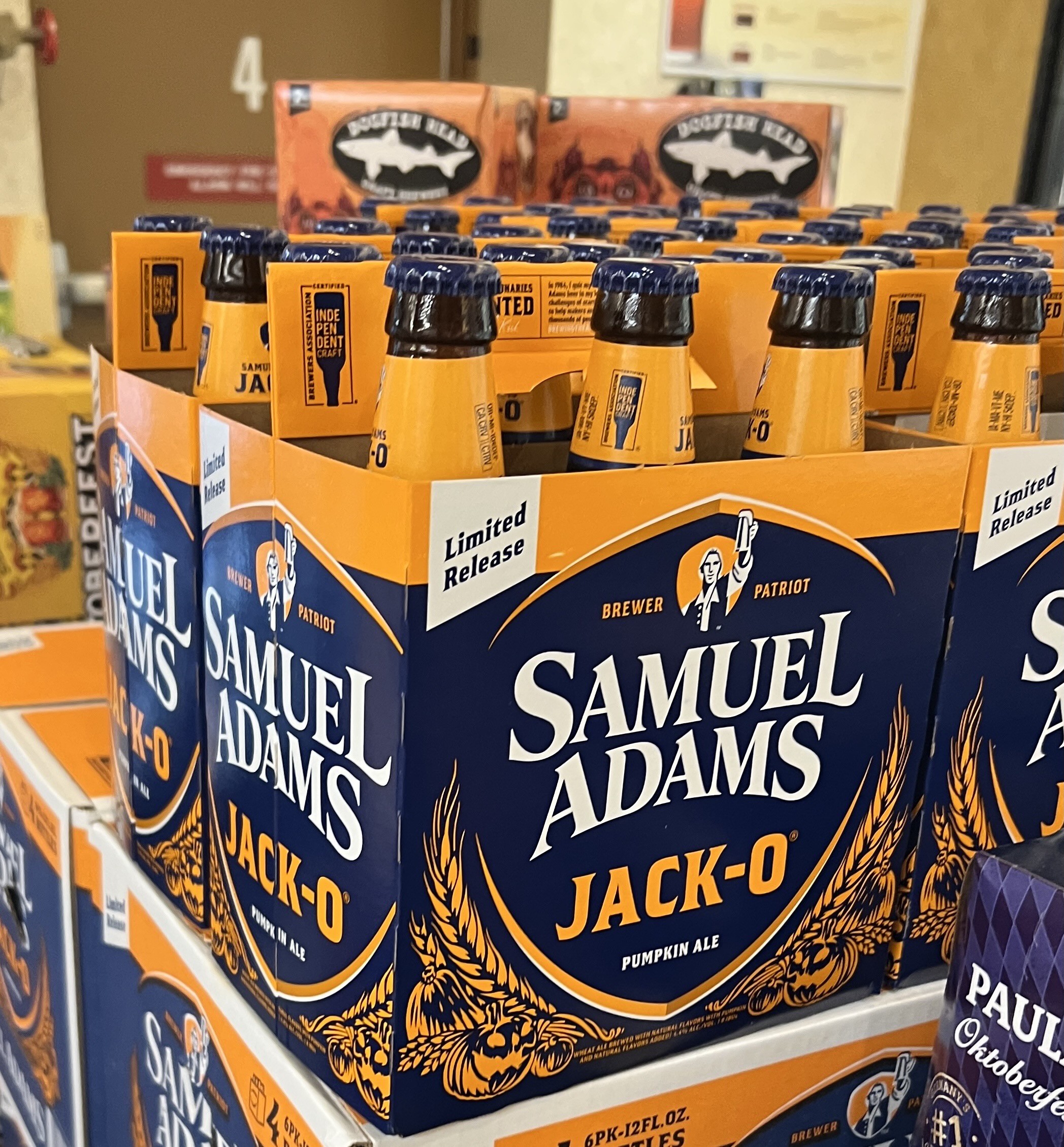 Photo of a 6-pack of Samuel Adam’s “Jack-O” pumpkin beer