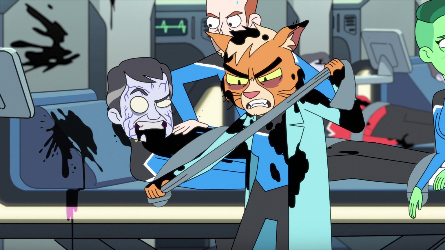 Cerritos CMO Dr TβAna prepares to restrain a crew member suffering from a rage virus.