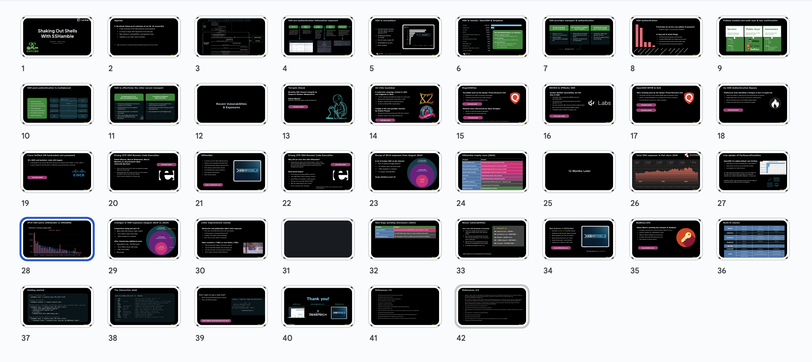 A top-level overview of the presentation presented as a grid of thumbnails, showing 42 slides.