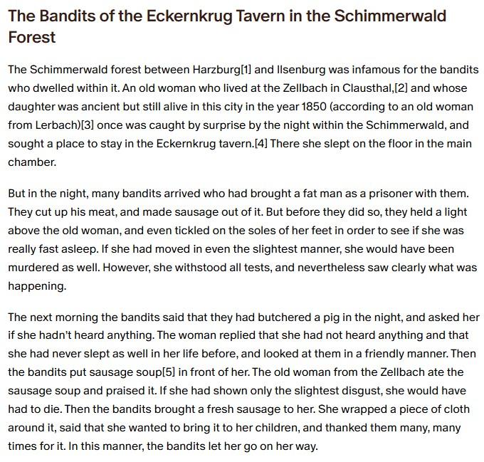 Part 1 of German folk tale "The Bandits of the Eckernkrug Tavern in the Schimmerwald Forest". Drop me a line if you want a machine-readable transcript!