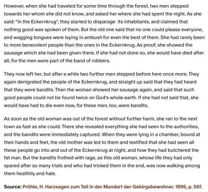 Part 2 of German folk tale "The Bandits of the Eckernkrug Tavern in the Schimmerwald Forest". Drop me a line if you want a machine-readable transcript!