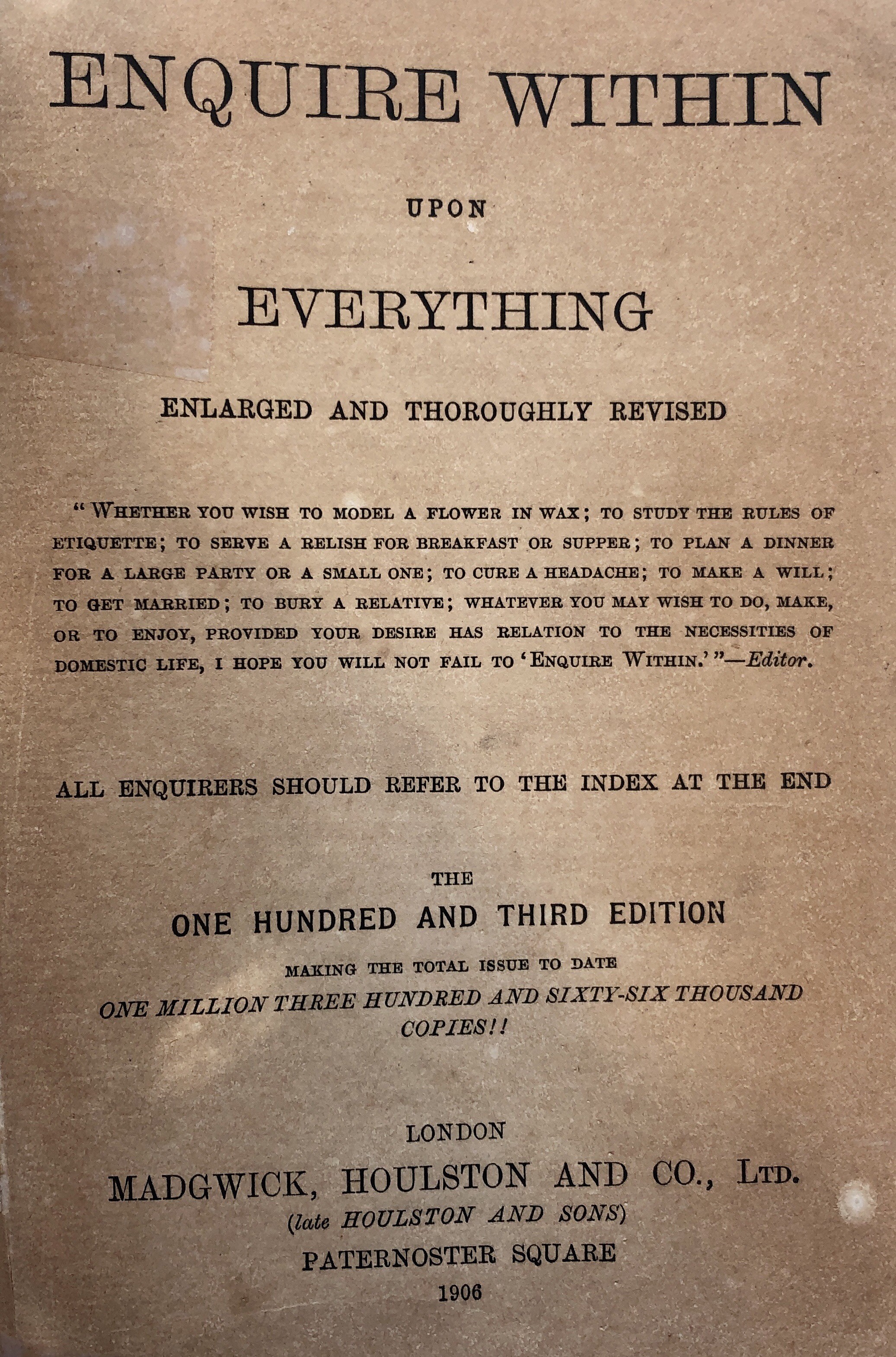 Title page from Enquire Within Upon Everything, published in 1906