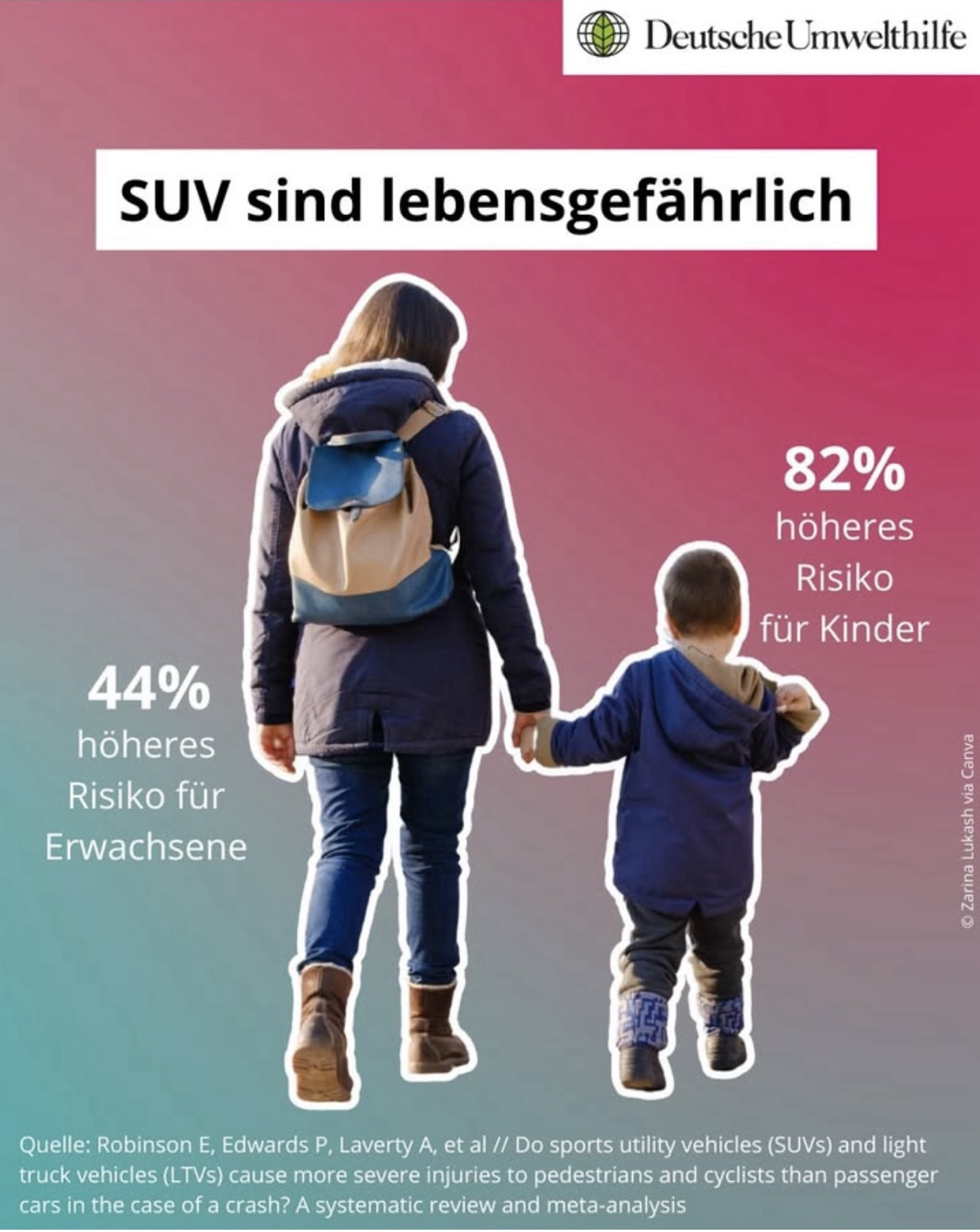 SUV sind lebensgefährlich 82% höheres Risiko für Kinder 44% höheres Risiko für Erwachsene