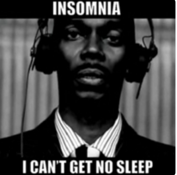 A black man wearing recording studio headphones. INSOMNIA - I Can't get no sleep