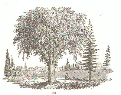 Illustration 80 from Asa Gray's Elements of botany (c.1890) with author(?) sitting under an American Elm tree with his dog.