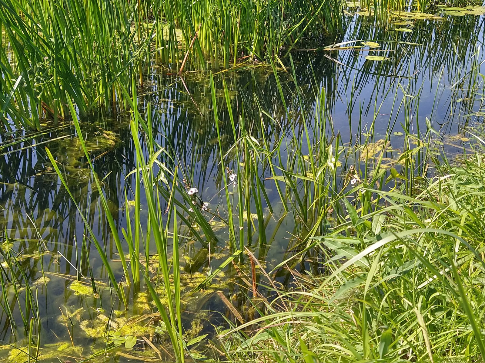 Very early on I encountered this stream. It was very clear and full of plants, including these plants with pretty white flowers in the foreground.
