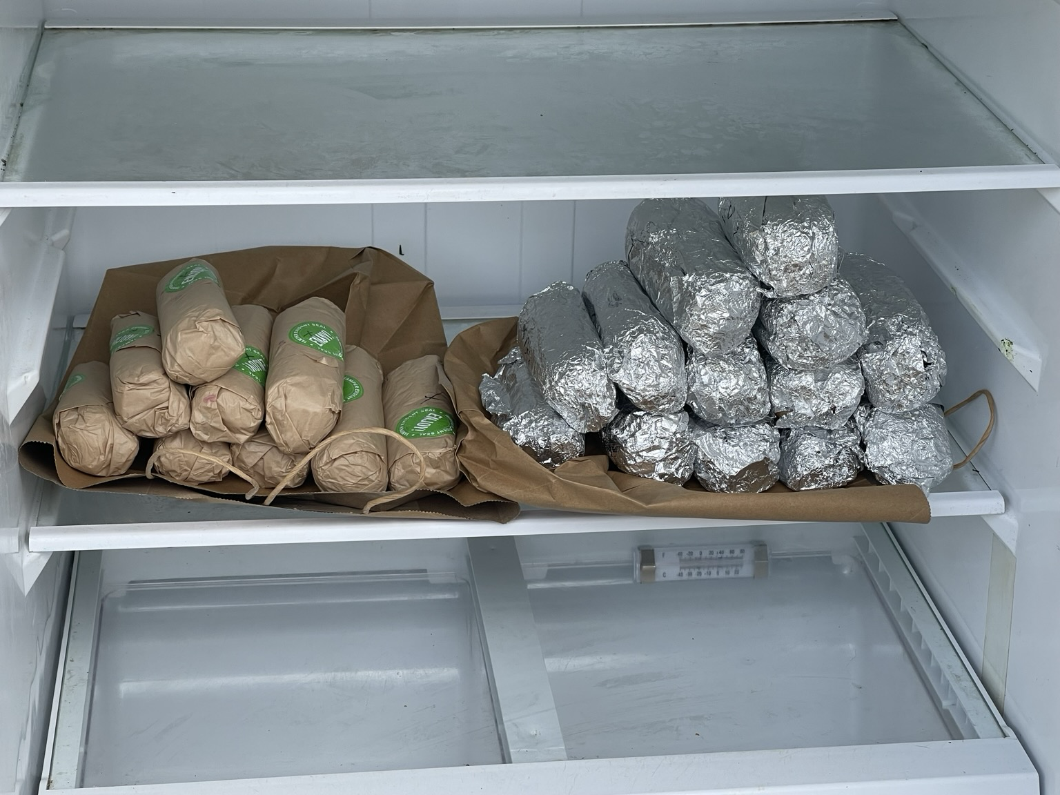 The same sandwiches place in the free fridge. They take up a whole shelf even stacked up on each other.