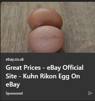 ad: "Great Prices - eBay Official Site - Kuhn Rikon Egg On eBay", illustrated by a picture of two eggs, link to ebay.co.uk