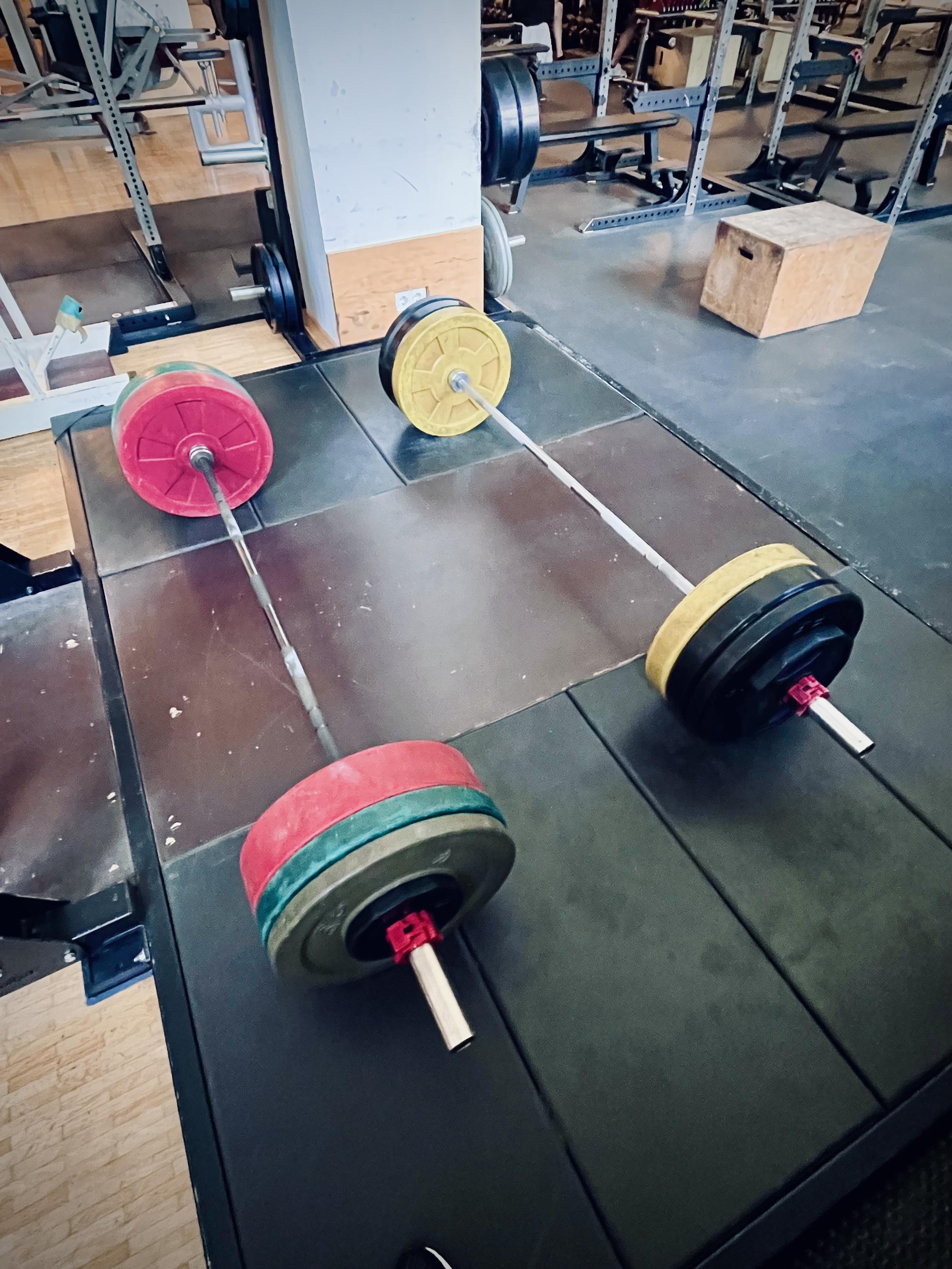 Deadlift platform with two loaded barbells on it