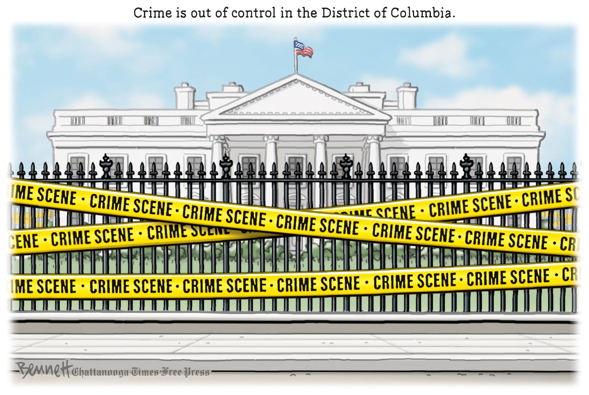 Cartoon of the White House, roped off with yellow "Crime Scene" tape.