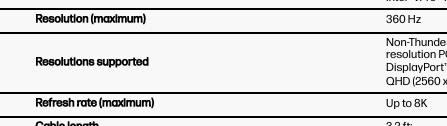 Resolution (maximum): 360 Hz Refresh rate (maximum): Up to 8k