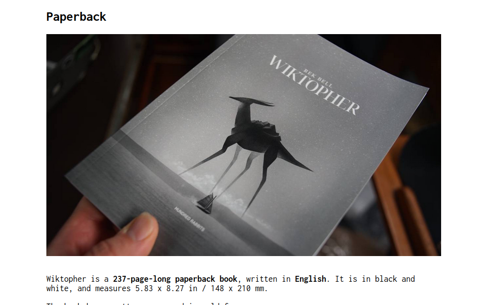a screenshot of the wiktopher.ca website featuring a photo of the paperback edition of Wiktopher, along with information about the book.