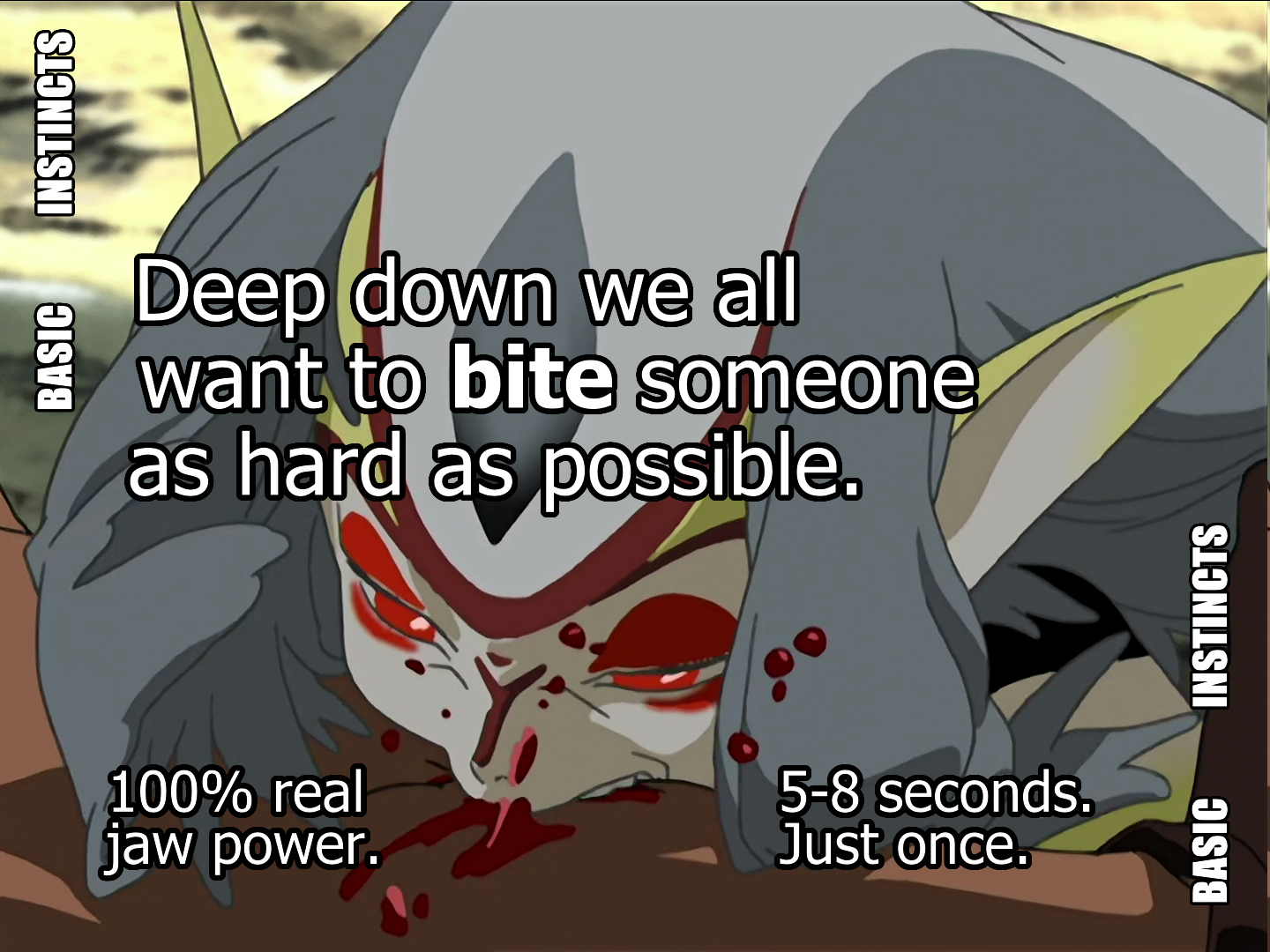 [ID: Screenshot from Blue Submarine No. 6. Mutio a humanoid but nonhuman person, bites Tetsu, drawing blood. Text says, "Basic Instincts: Deep down we all want to bite someone as hard as possible. 100% real jaw power. 5-8 seconds. Just once." /end ID]