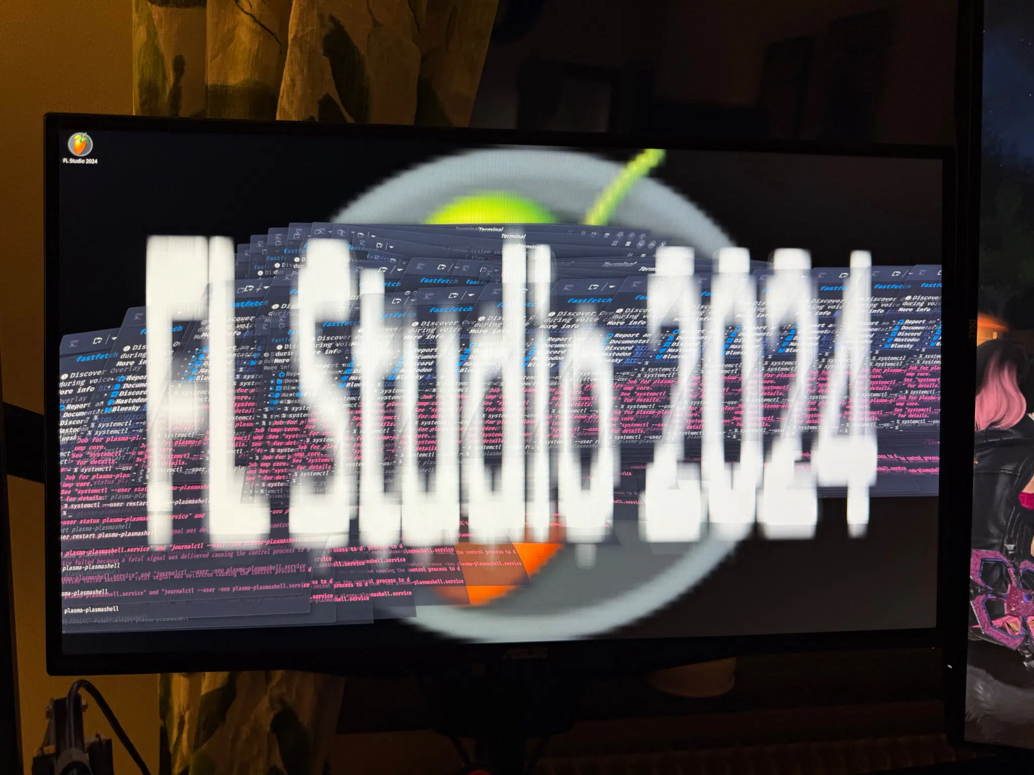 a photograph of thermias monitor with the words "FL Studio 2024" stretched across the entire monitor, and a terminal smudged all over the background