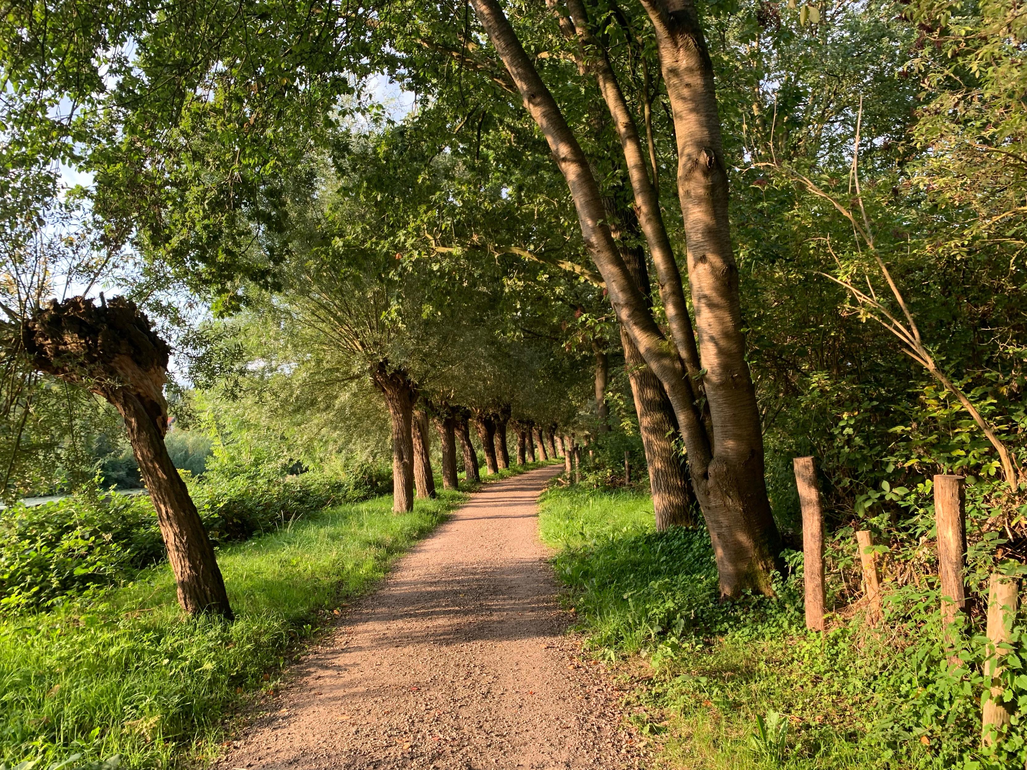 Na 5 kilometer ging het onder de A27 door en werd het pad een wilgenlaan.