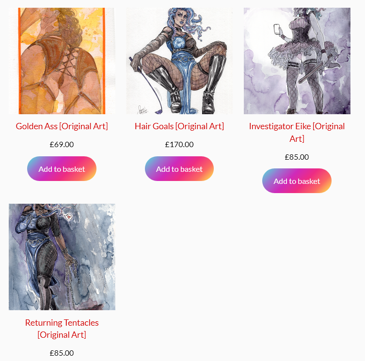 Screenshot of the original art section where you can see each painting and the price