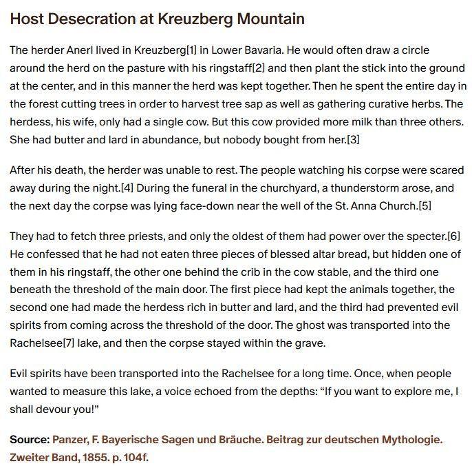 German folk tale "Host Desecration at Kreuzberg Mountain". Drop me a line if you want a machine-readable transcript!