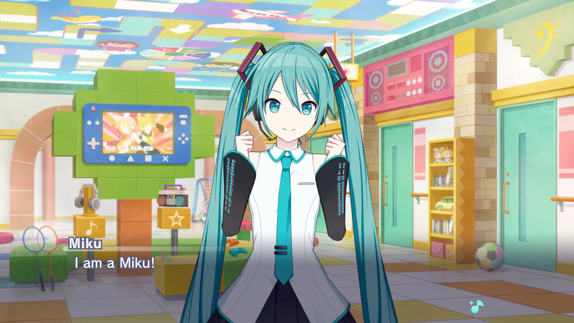 Made from Project Sekai's story board, in a toy house, Hatsune Miku says "I am a Miku!"