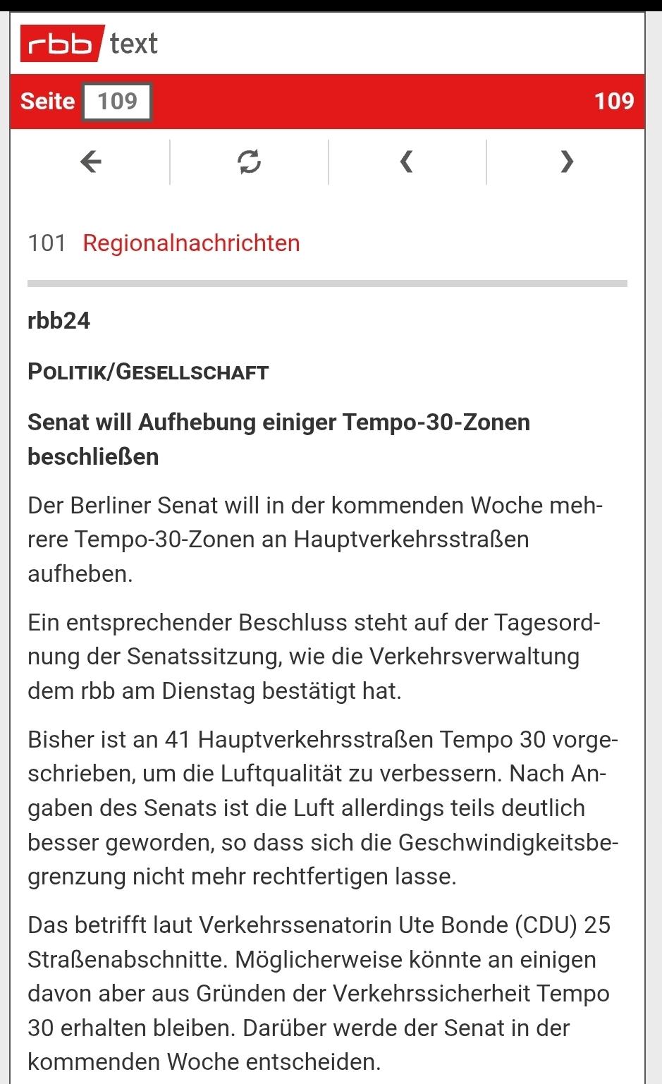 Rbb24, Senat will Aufhebung einiger Tempo 30 Zonen beschließen, in der kommenden Woche sollen mehrere Tempo 30 Zonen anhaben verkehrsstraßen aufgehoben werden...