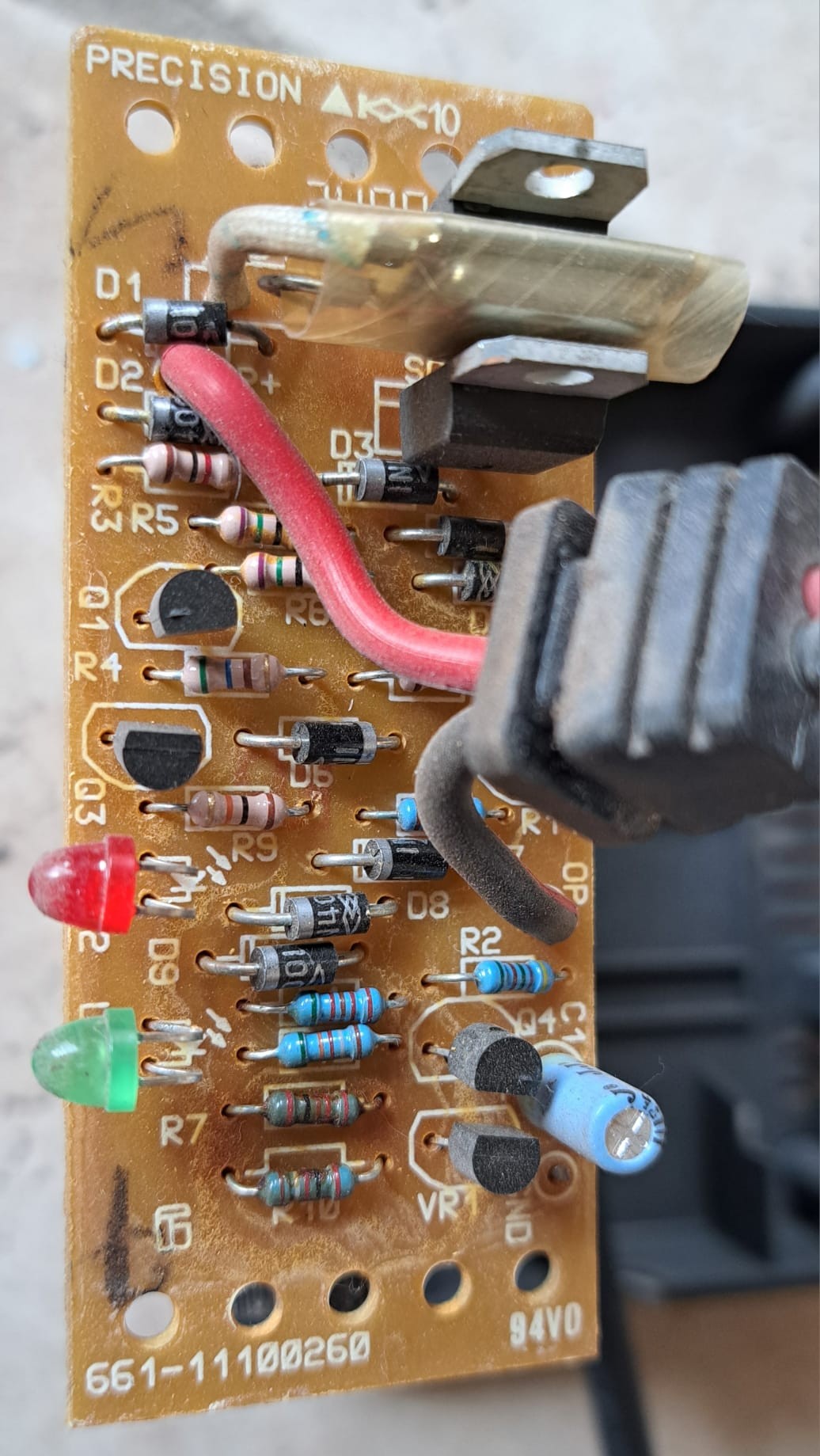 The top side of the internal circuit board. Where might I start measuring voltages in order to determine what component I could change in order to boost the float voltage?