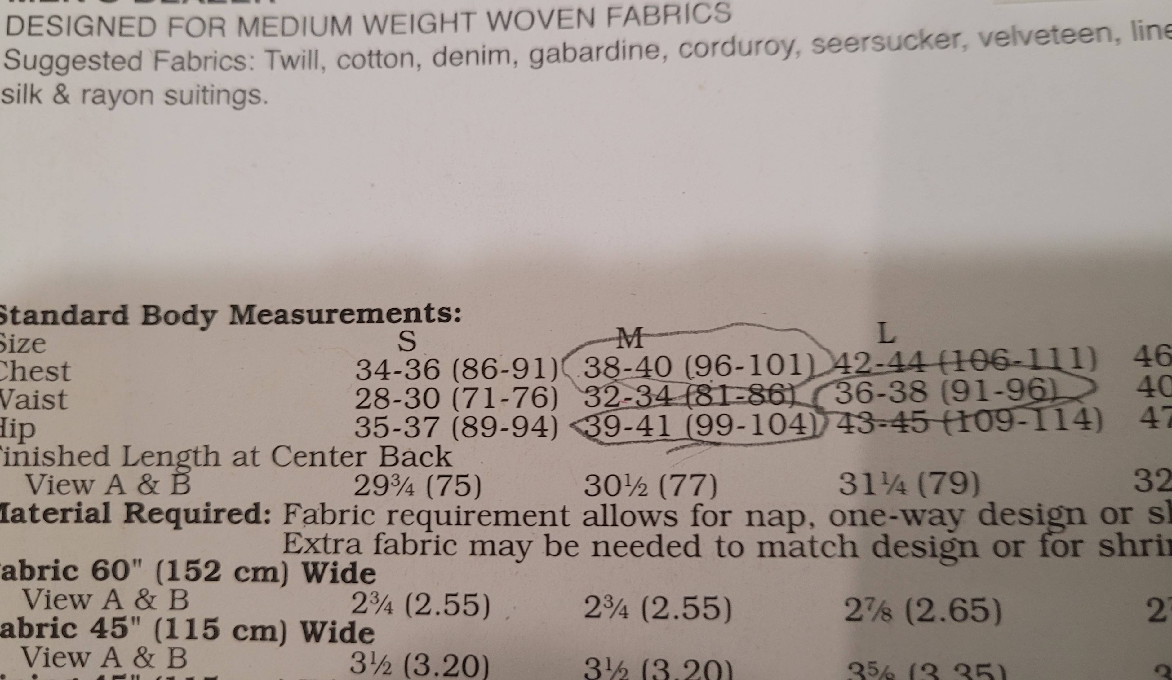 Back of pattern shows measurements