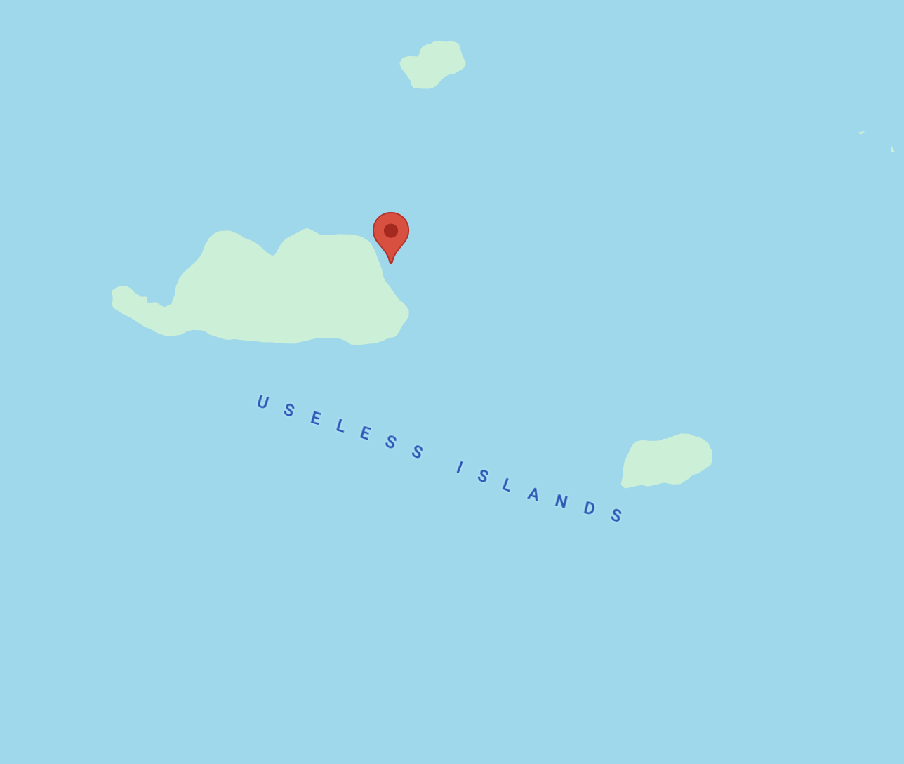 A screenshot of Google Maps showing islands off the coast of New Zealand called "Useless Islands"