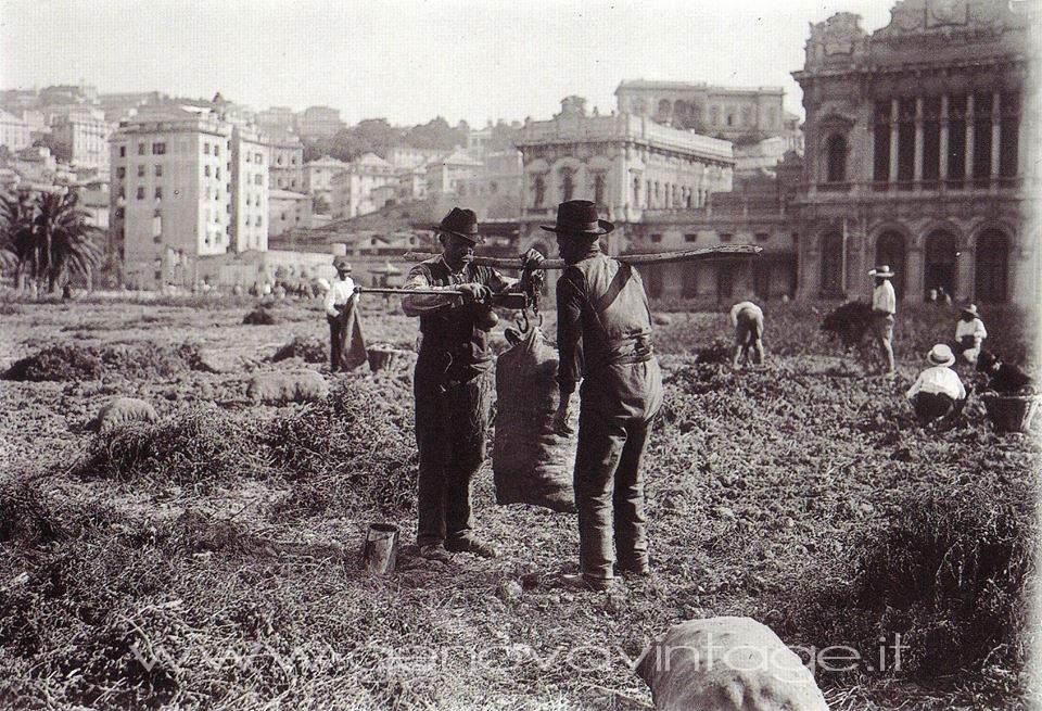 bezagnìni all’opera nei pressi dell’attuale centralissima stazione ferroviaria di Brignole, 1917