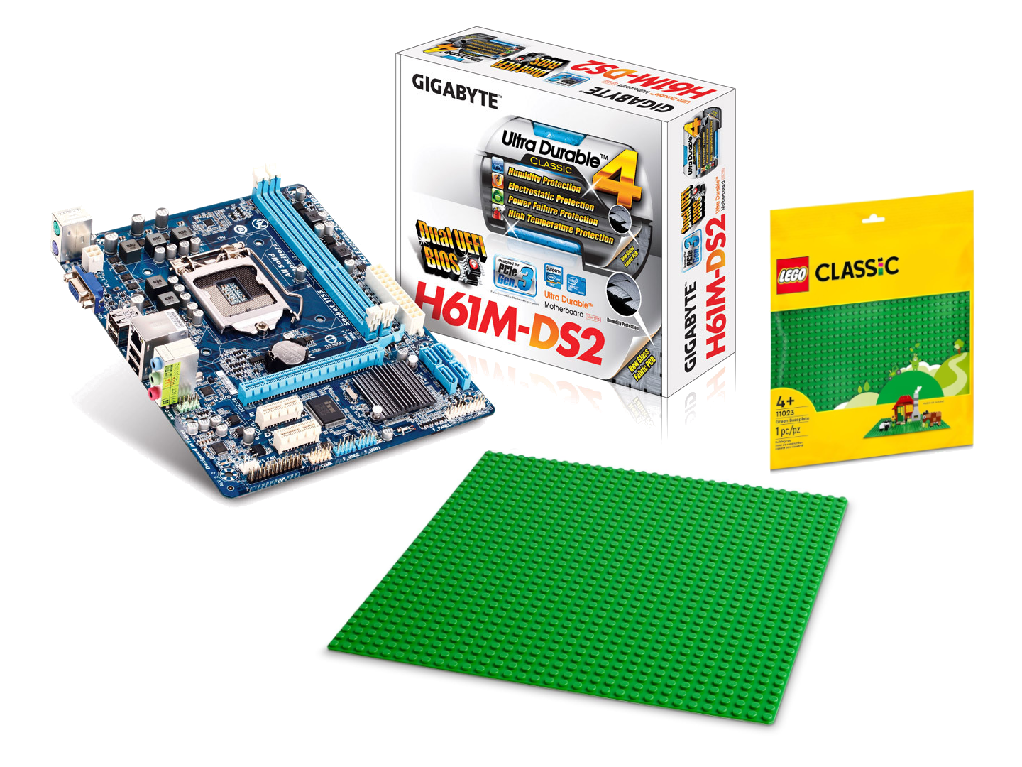An image depicting a computer motherboard and a LEGO baseplate, both called "alaplap" (baseboard) in Hungarian