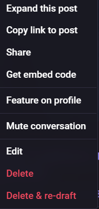 Drop down menu tofr actions realted to infosec.exchange posts.