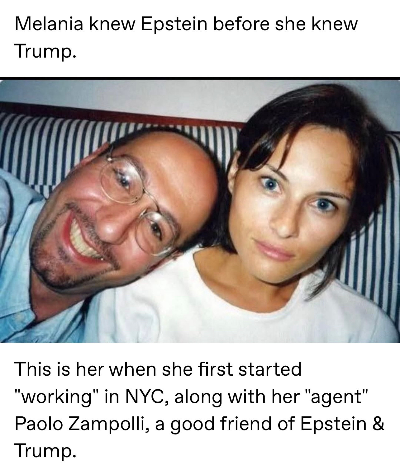 Melania knew Epstein before she knew Trump. This is her when she first started "working" in NYC, along with her "agent" Paolo Zampolli, a good friend of pedophiles Epstein & Trump.