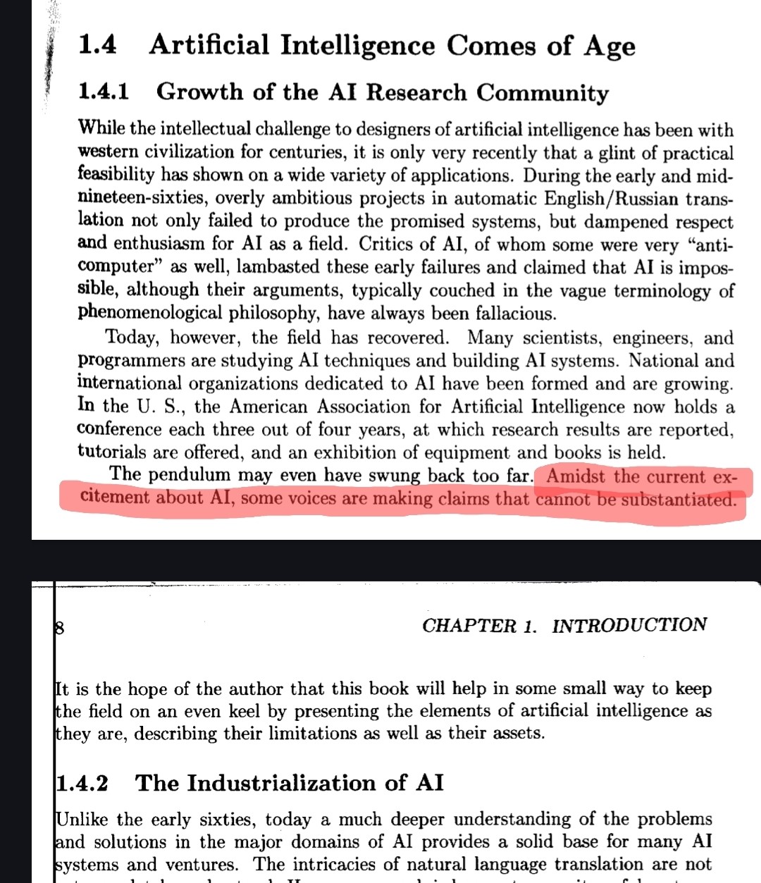 Excerpt from book in previous. Highlighted: Amidst the current excitement about AI, some voices are making claims that cannot be substantiated.