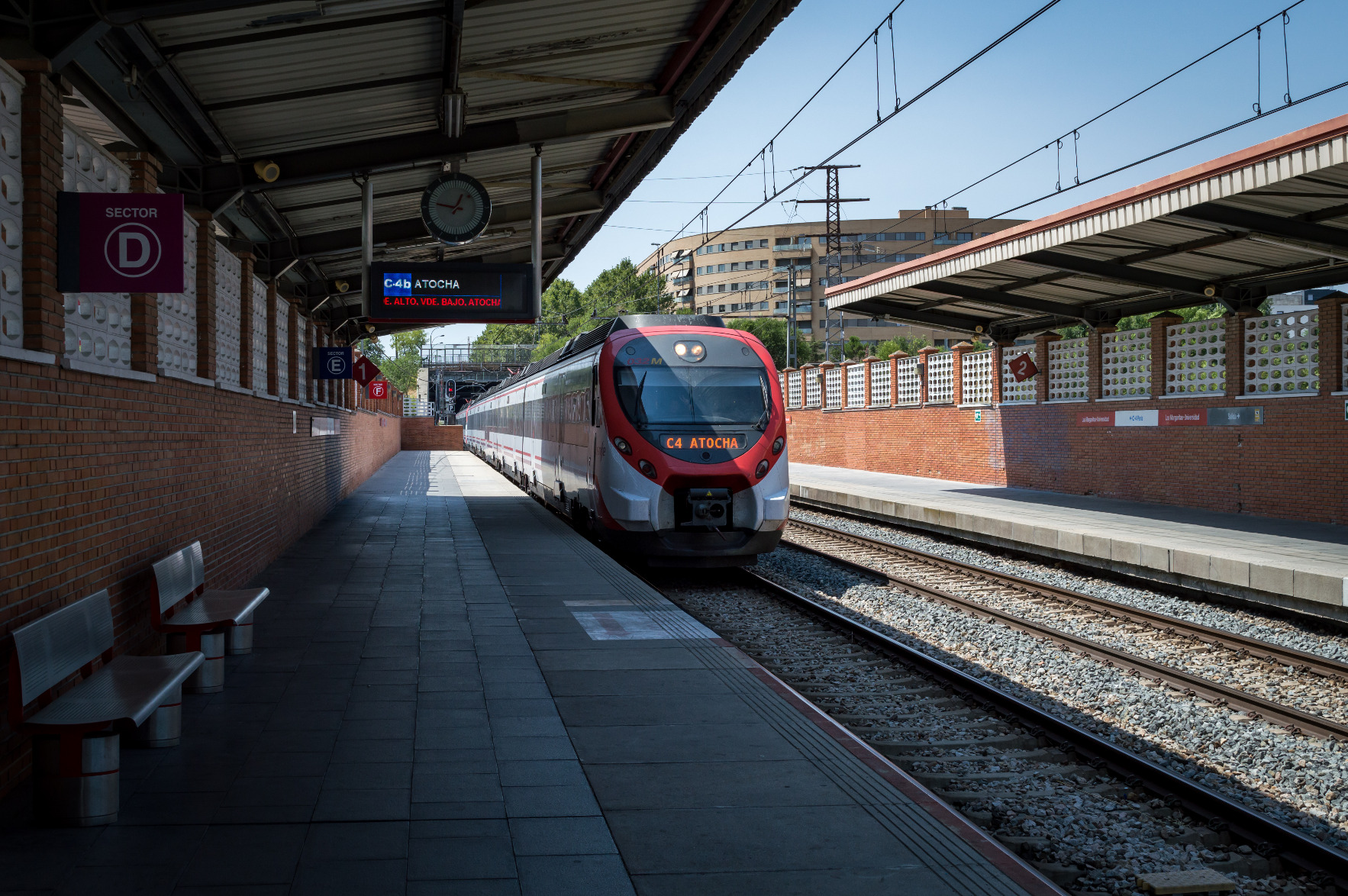 Cercanias Madrid train entering Las Margaritas - Universidad station It's line C4 to Atocha