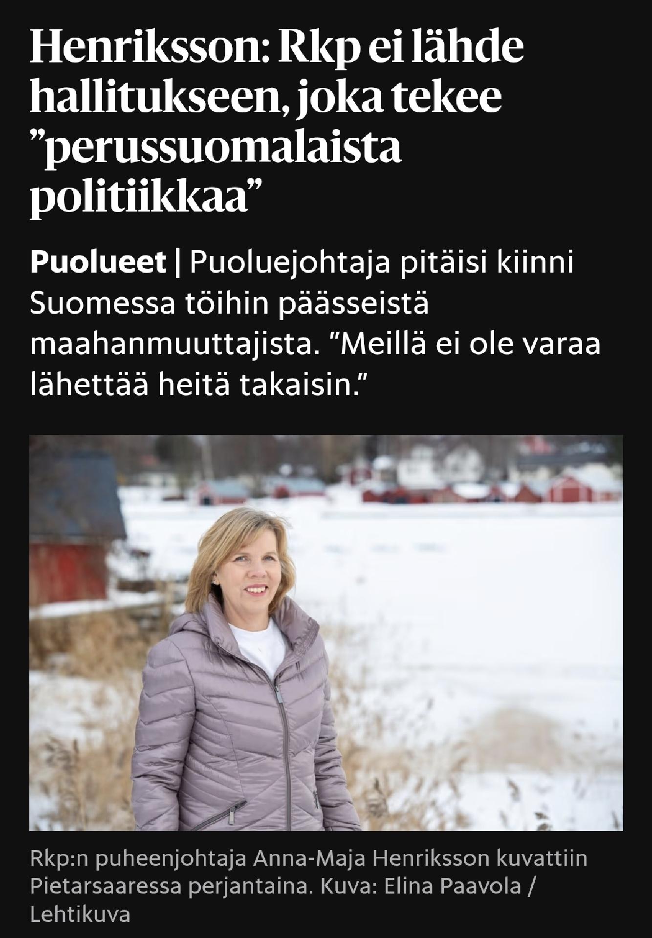 Henriksson: RKP ei lΓ€hde hallitukseen, joka tekee perussuomalaista politiikkaa.