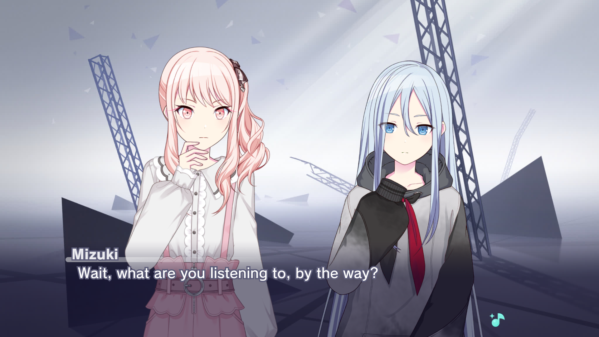 Mizuki asks Lyth "Wait, what are you listening to, by the way?"