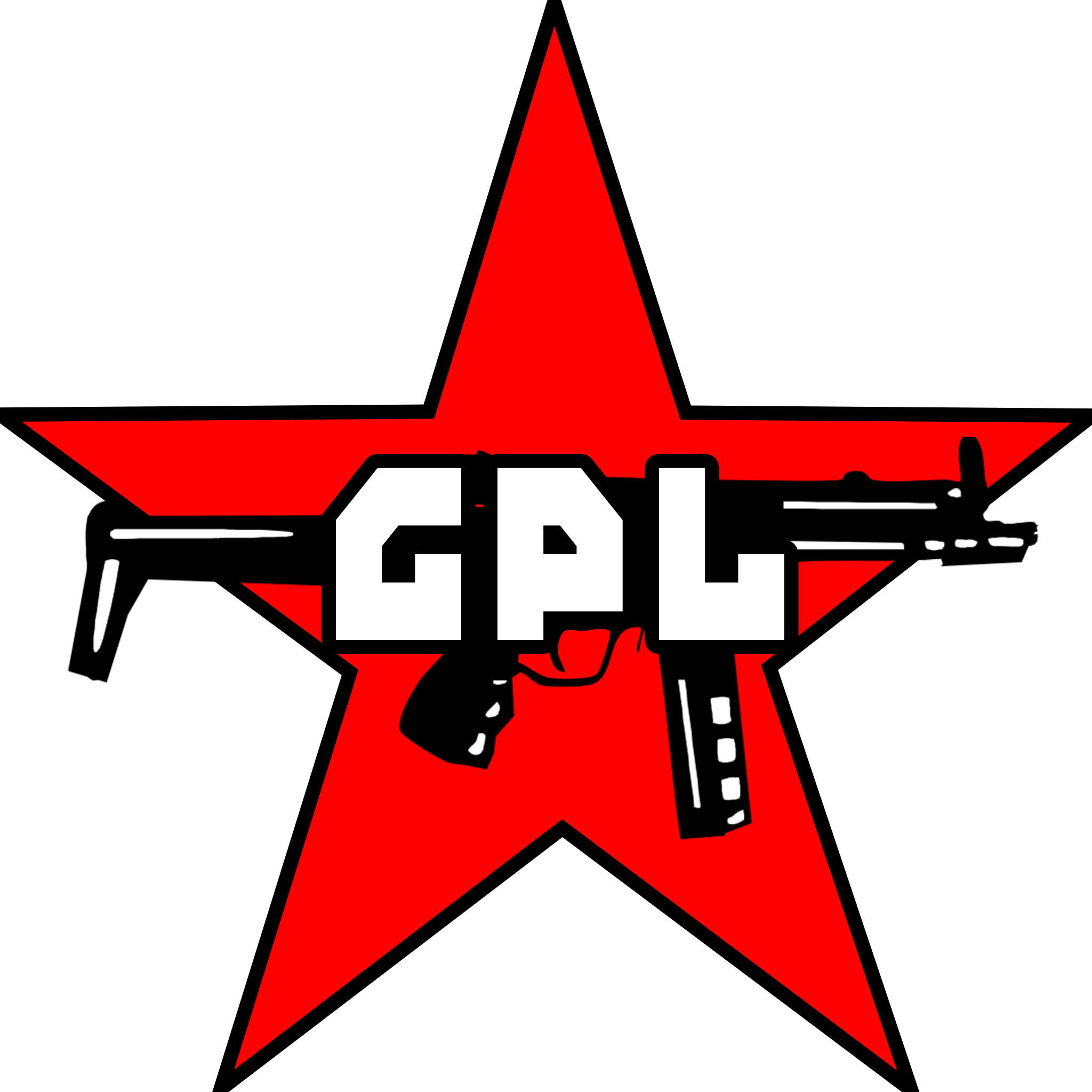 Rote Armee Fraktion logo. The R, A and F have been replaced with the letters G, P, and L.
