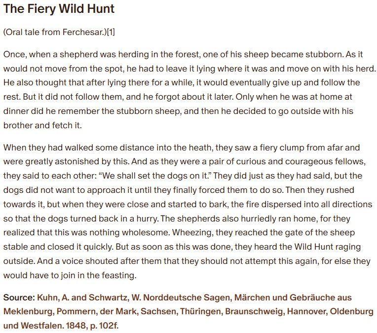 German folk tale "The Fiery Wild Hunt". Drop me a line if you want a machine-readable transcript!