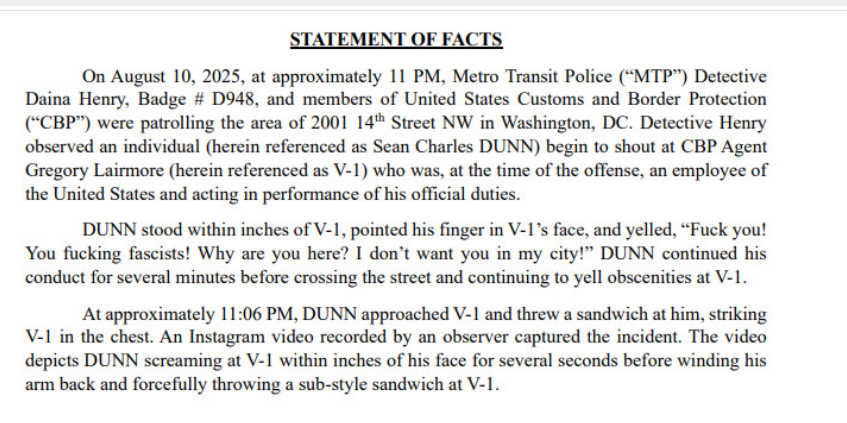 Legal description of a legal incident which someone is charged with throwing a sandwich at a CBP officer