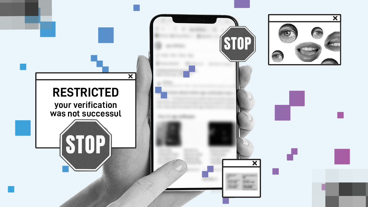 A phone showing a restriction banner, representing the barriers created by age verification.