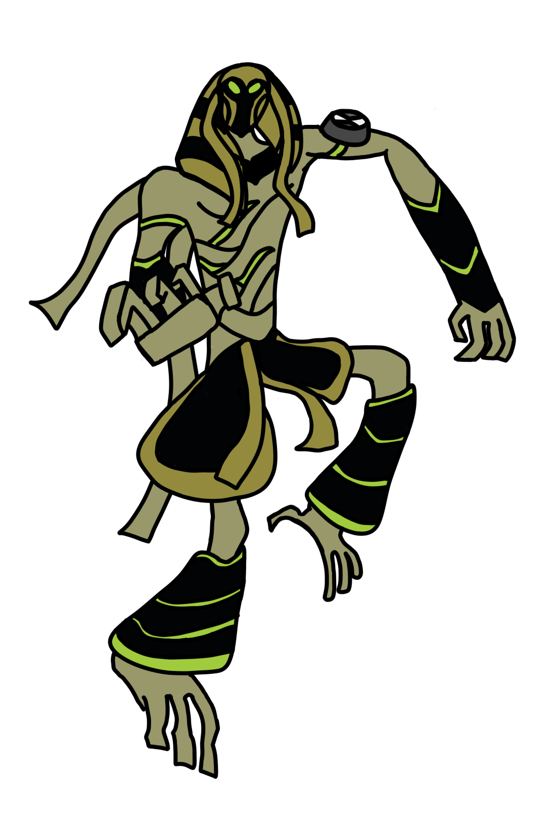 Snare-Oh in the air, stretching his right arm at the viewer.