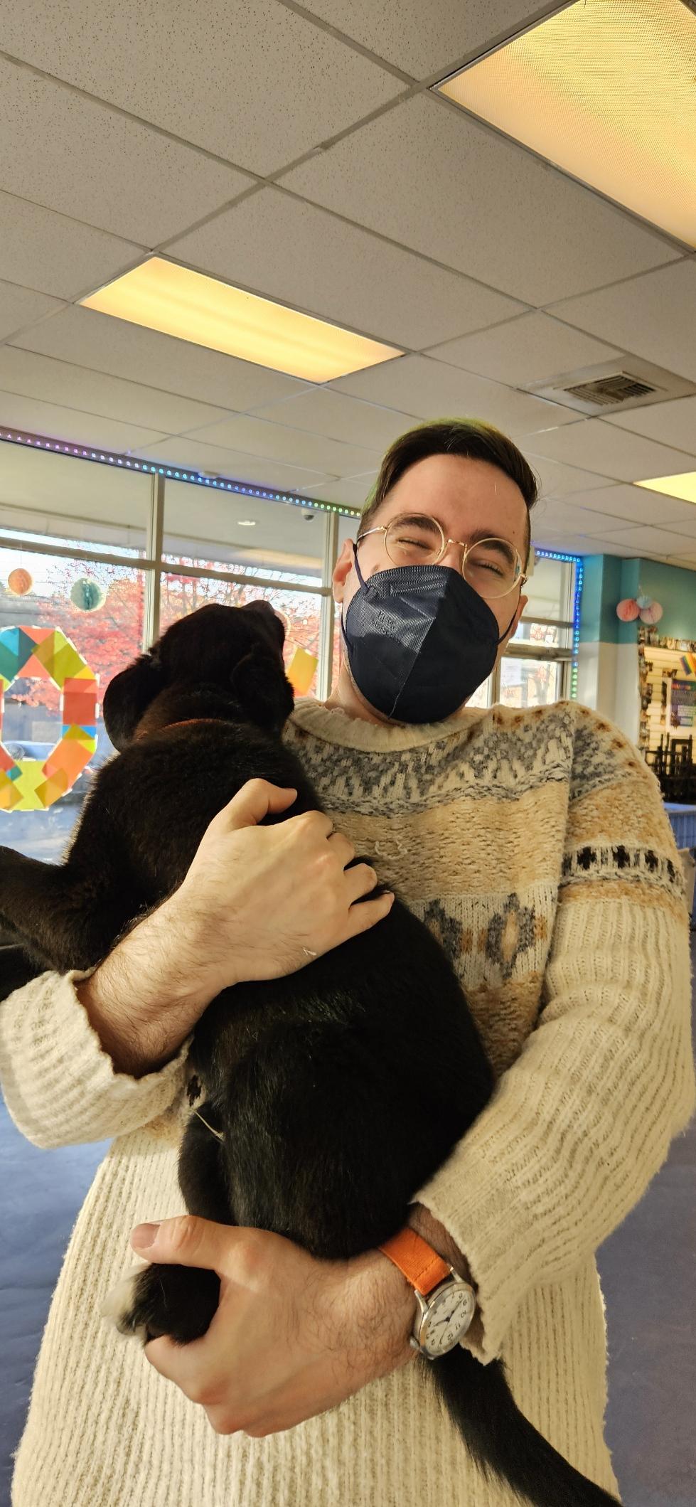 Me looking happy as puppy licks my face.