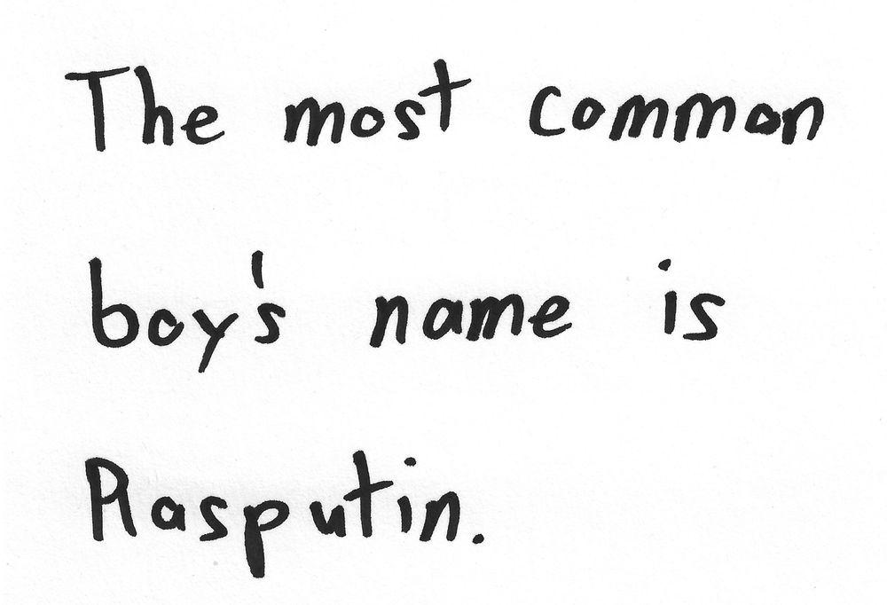 The most common boy's name is Rasputin.
