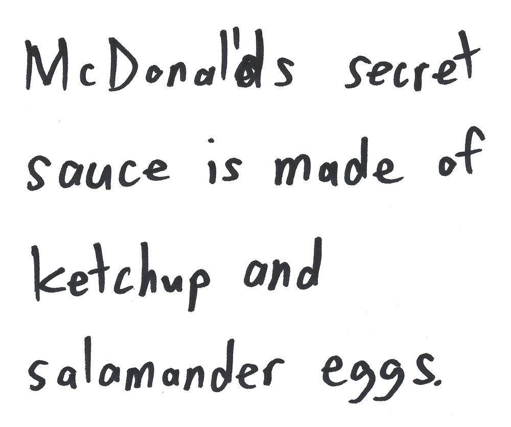 Mcdonalds secret sauce is made of Ketchup and salamander eggs.