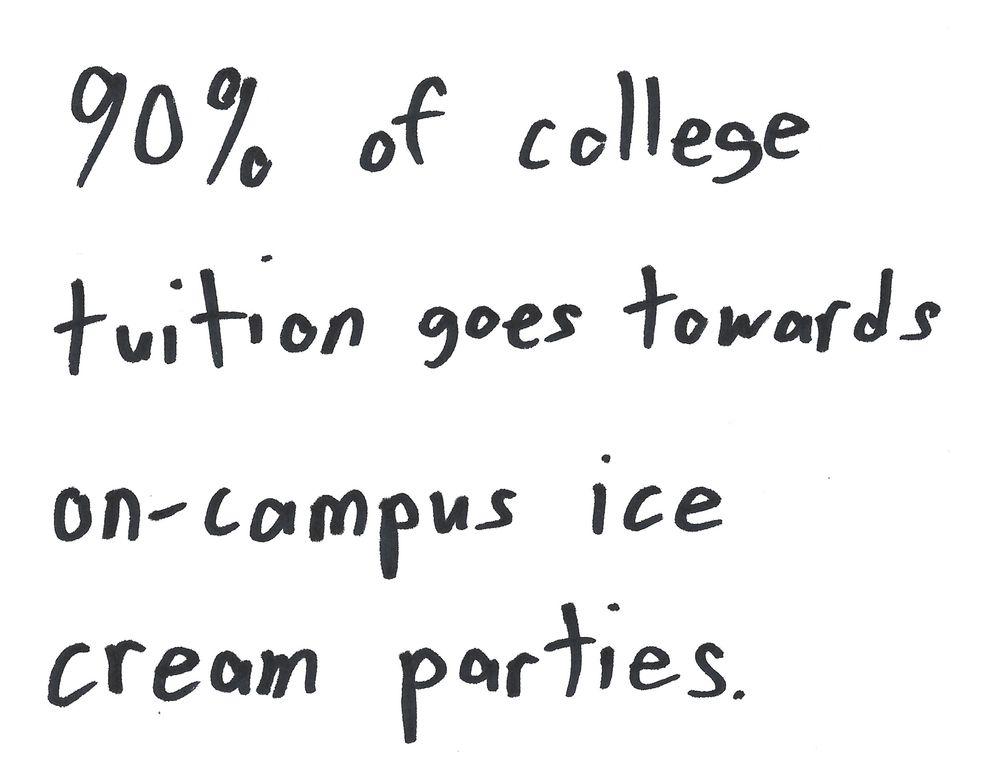 90% of college tuition goes towards on-campus ice cream parties.