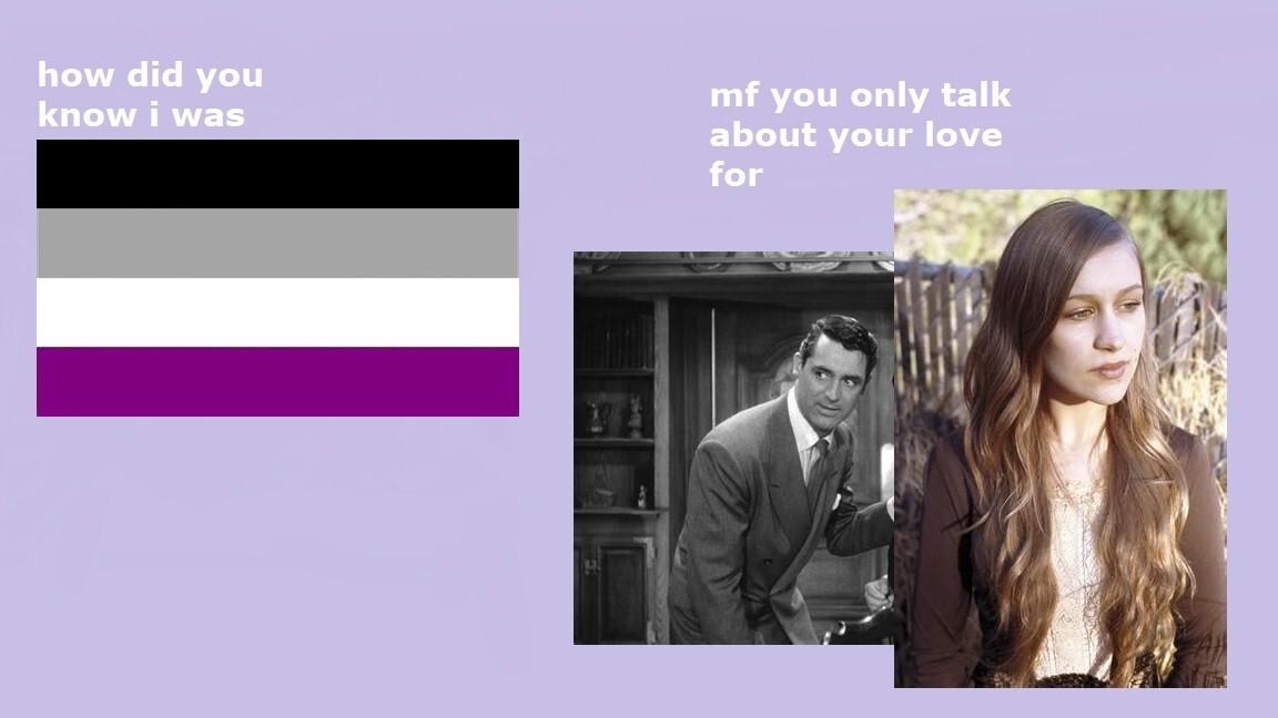 how do you know i was asexual? mf you only talk about your love for cary grant and joanna newsom; collage by me