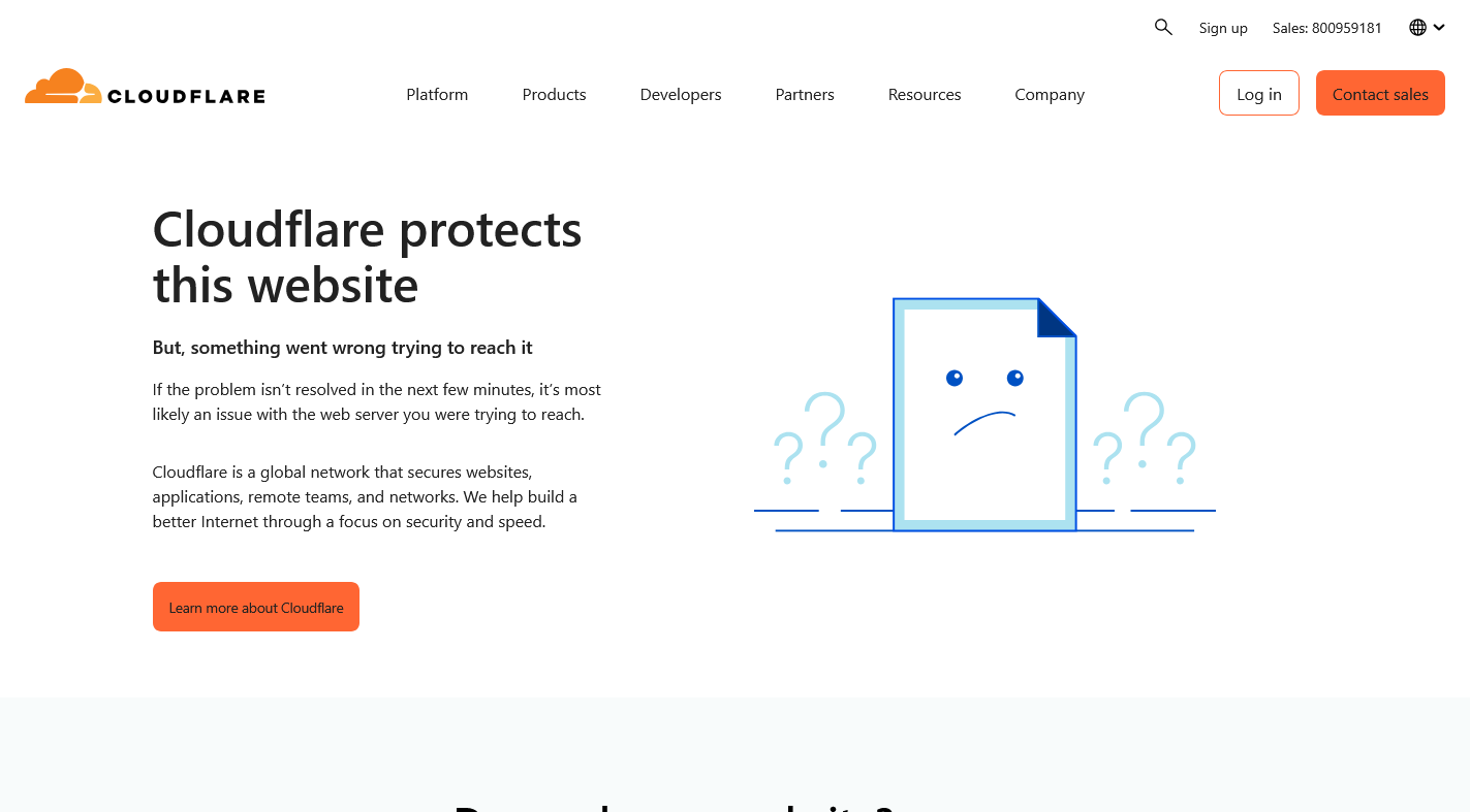 Pagina di errore di Cloudflare