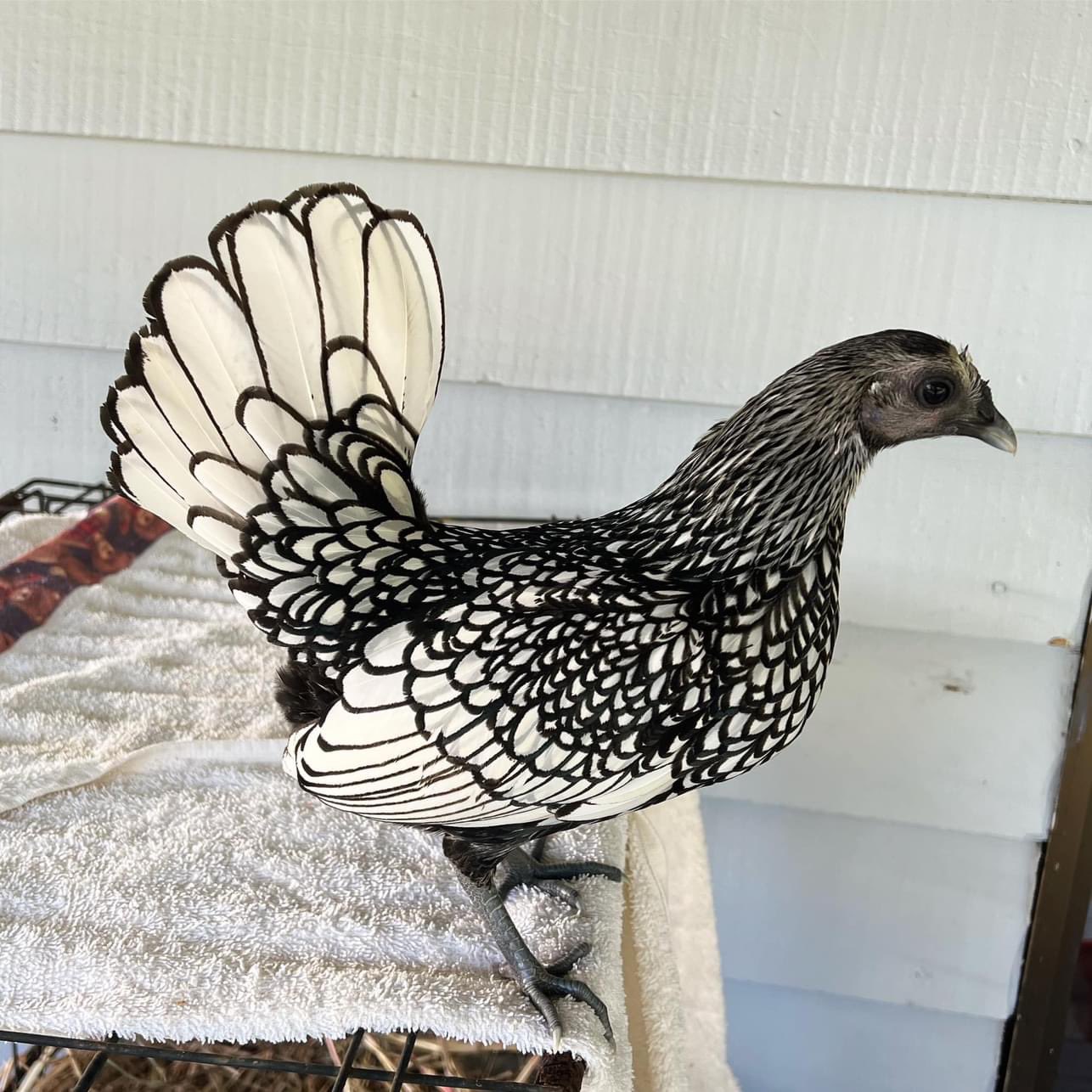 photography of a silver sebright bantam